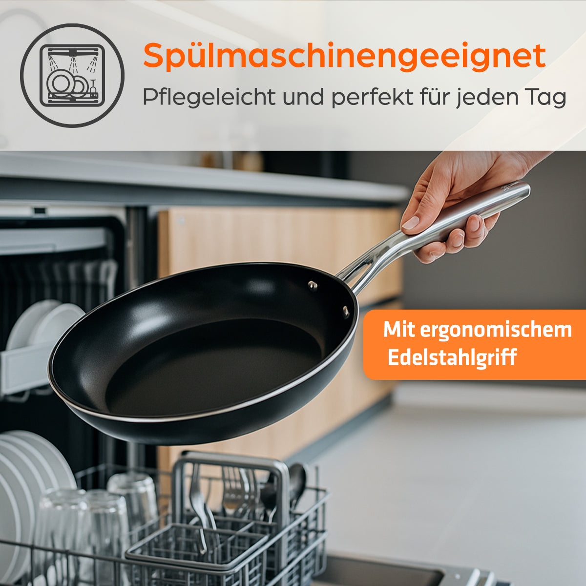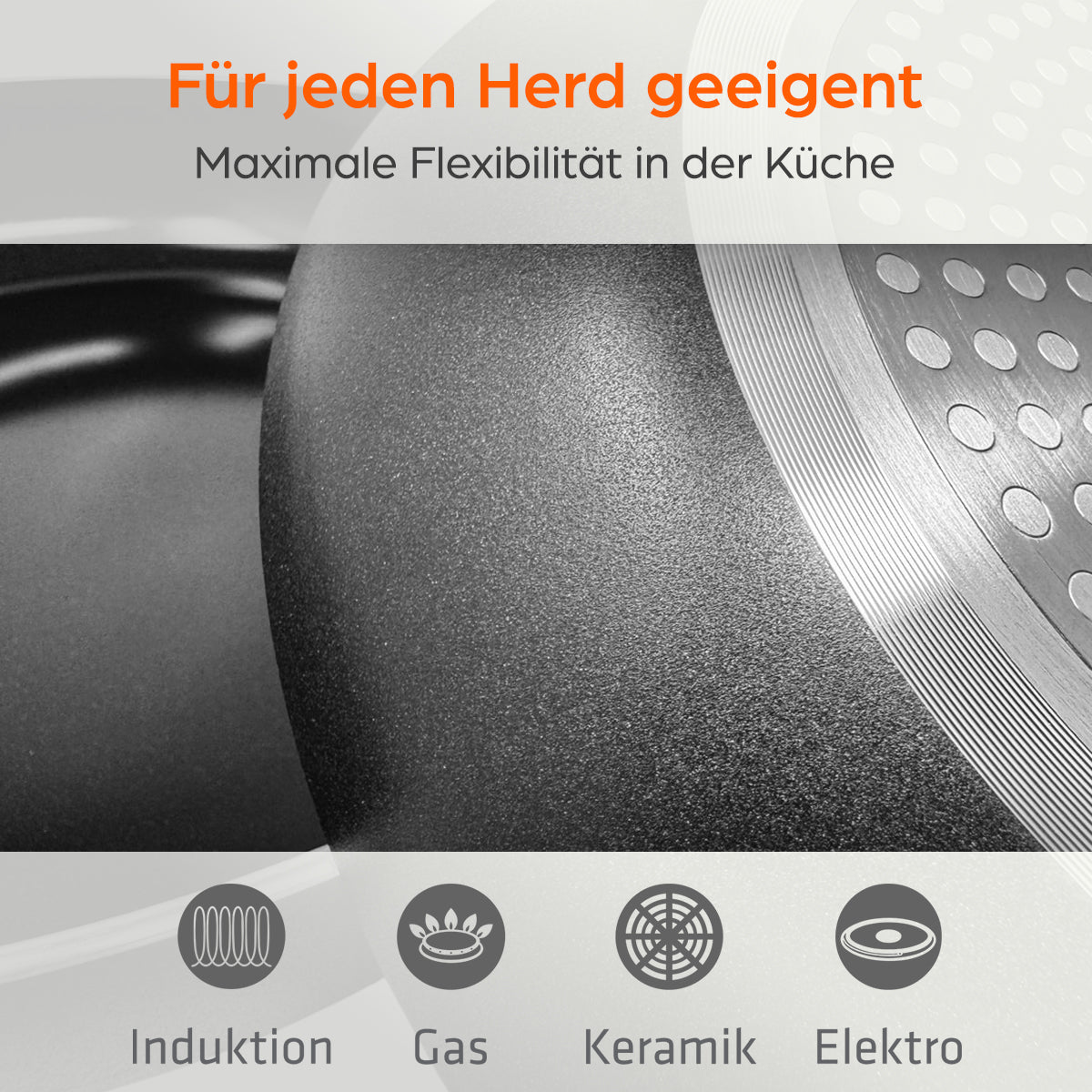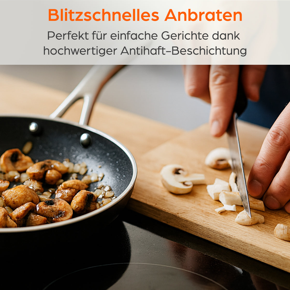 Auch in Sachen Hitzebeständigkeit überzeugt die Pfanne: Bis 400 °C einsetzbar und für alle Herdarten geeignet – inklusive Induktion. So bleibt sie ein zuverlässiger Begleiter in jeder Küche, egal ob beim schnellen Kochen im Alltag oder beim aufwendigen Menü.